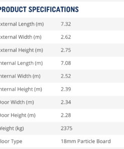 Nuestra espaciosa unidad de almacenamiento de acero de 24 pies x 9 pies generalmente está en stock y lista para entrega inmediata en todo el mundo desde nuestras instalaciones de almacenamiento en Texas y enviamos desde Puerto de Jacksonville.