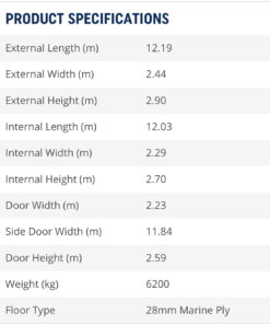 📏 Apertura espaciosa: con una impresionante apertura lateral de 11836 mm (38 pies 9 ″) y sin poste central, disfrutará de acceso sin restricciones al contenido del contenedor. Perfecto para cargar y descargar artículos voluminosos.
