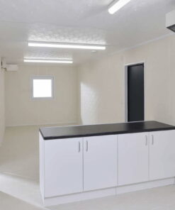 Explore las posibilidades con nuestra cabina con comedor ECOlink de primer nivel, Esta unidad se puede enviar a todo el mundo desde el puerto de Jacksonville. Como parte de la gama ECOlink, esta cabina con cocina cuenta con unas altas especificaciones, con ventanas de doble acristalamiento oscilobatientes de PVC, sensores PIR, grifos que no golpean y un elegante acabado externo de lados planos.